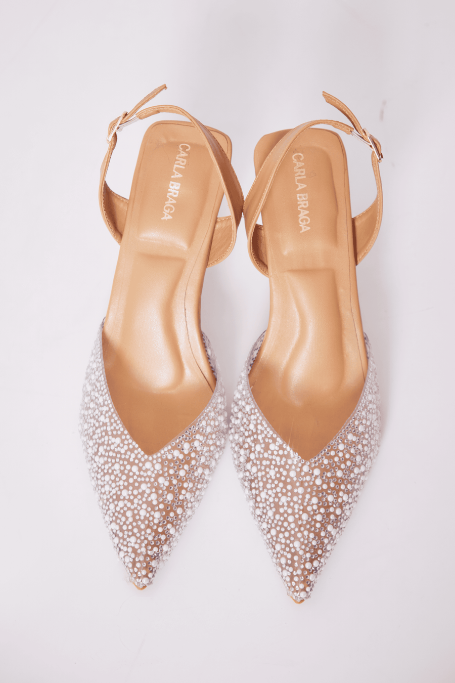 Introducing the exquisite ‘Ivory’. These pumps feature an upper filled with pearls, adding sophistication to your look. The rest of the shoe is tan-colored providing a classic and versatile touch, perfect for pairing with various outfits. Slingback provides the comfortable fit you deserve, these pumps are the epitome of chic fashion. Perfect for any occasion, these heels are a must-have for any fashion-forward individual.